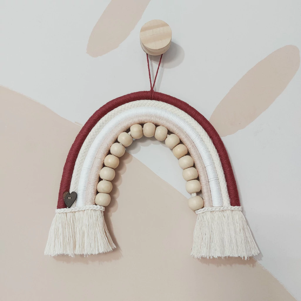 Confeccionado em fios de algodão com miçangas de madeira de reflorestamento.