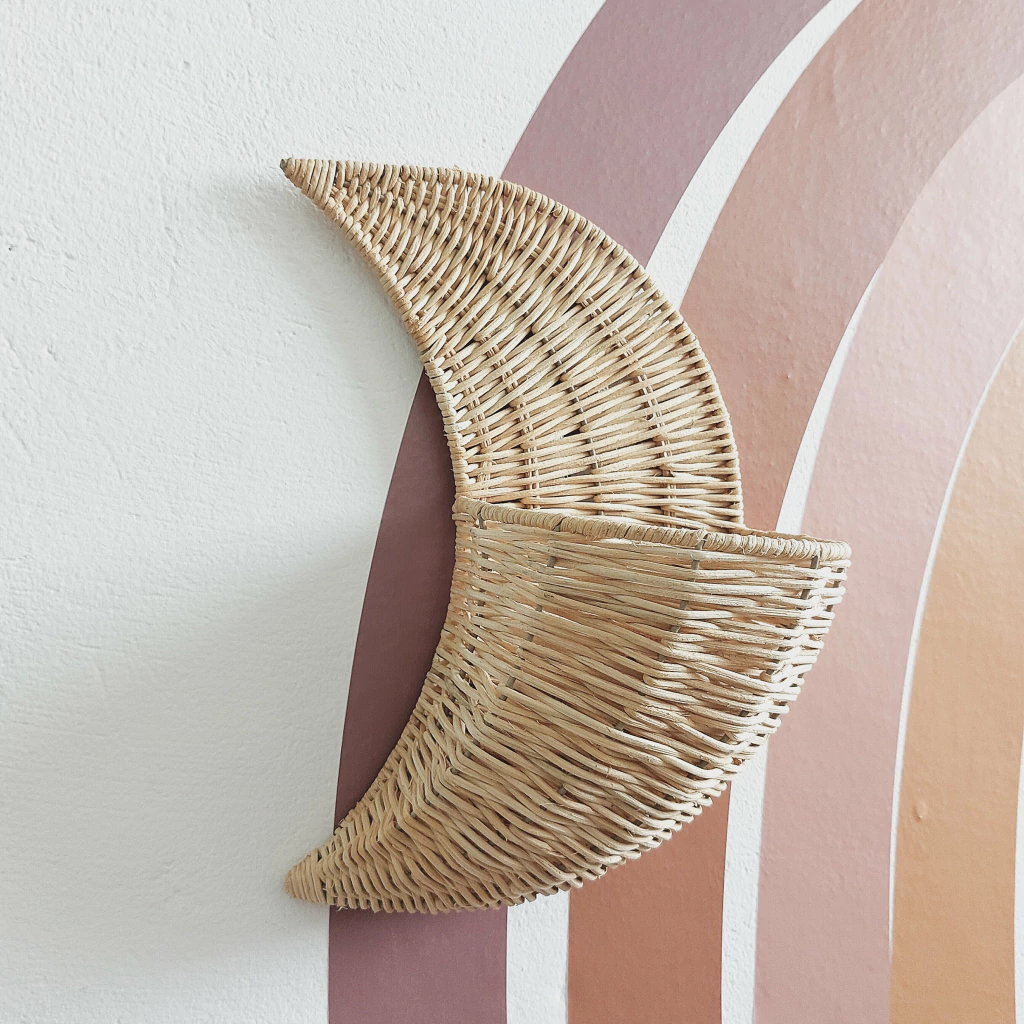 Transforme o quartinho do seu pequeno em um verdadeiro sonho com o Cesto Rattan em formato de lua! Este cesto encantador não é apenas um item de organização, mas também uma peça decorativa que traz um toque lúdico e acolhedor ao ambiente.